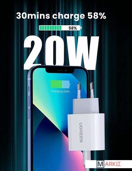 Markit » Зарядные устройства » Сетевое зарядное Ugreen CD137 50698 (белый)